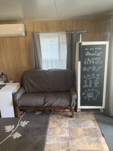 Seating booth next to kitchen. Converts to bed (Sleeps 1-2)